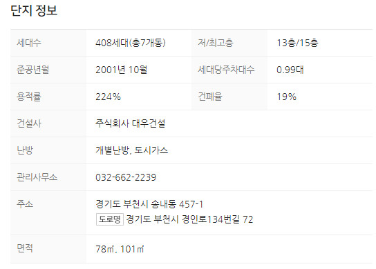부천에 위치한 지은지 18년된 아파트 입니다.
