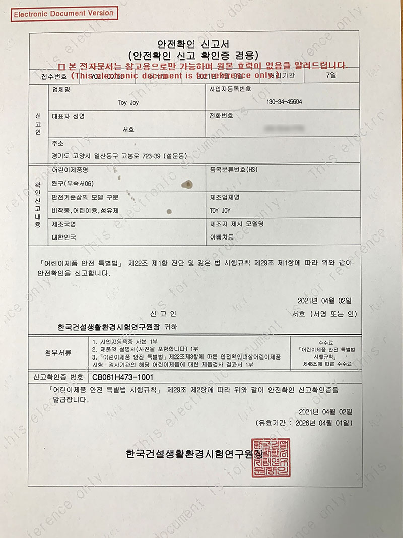 이미 예전부터 안전인증은 받았었던 제품이지만 제품 리뉴얼을 하면서 다시 한 번 인증을 받았어요.