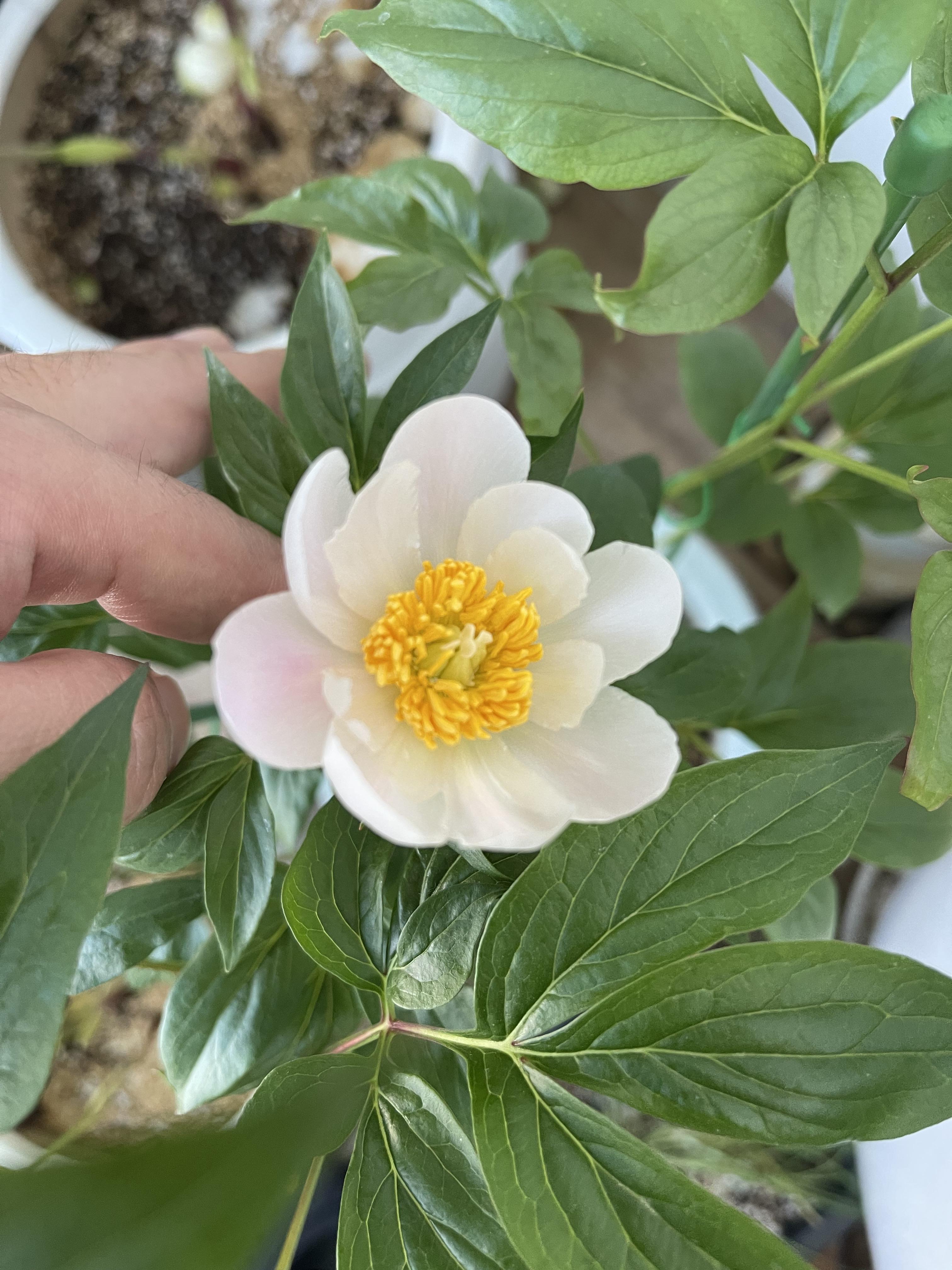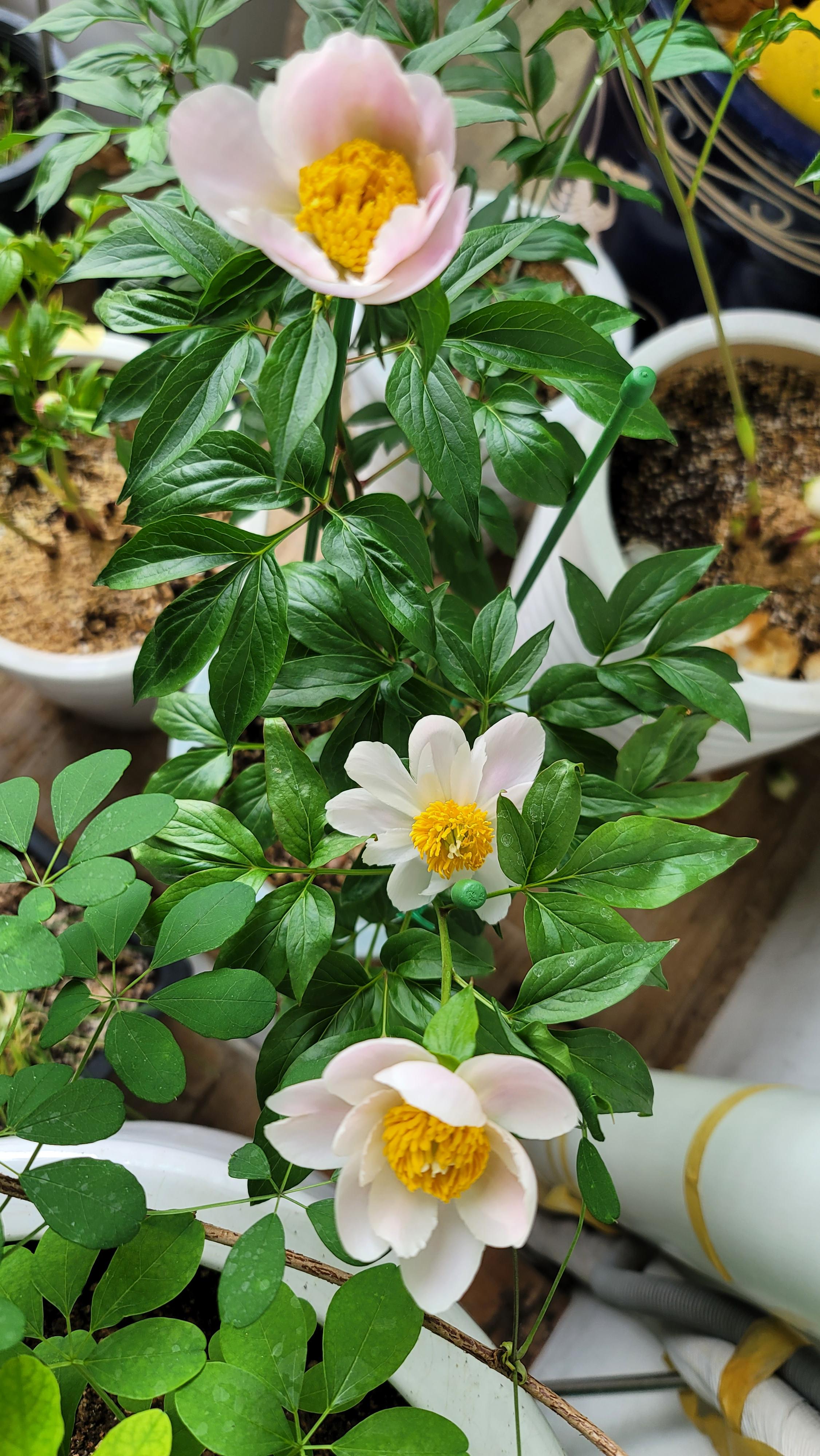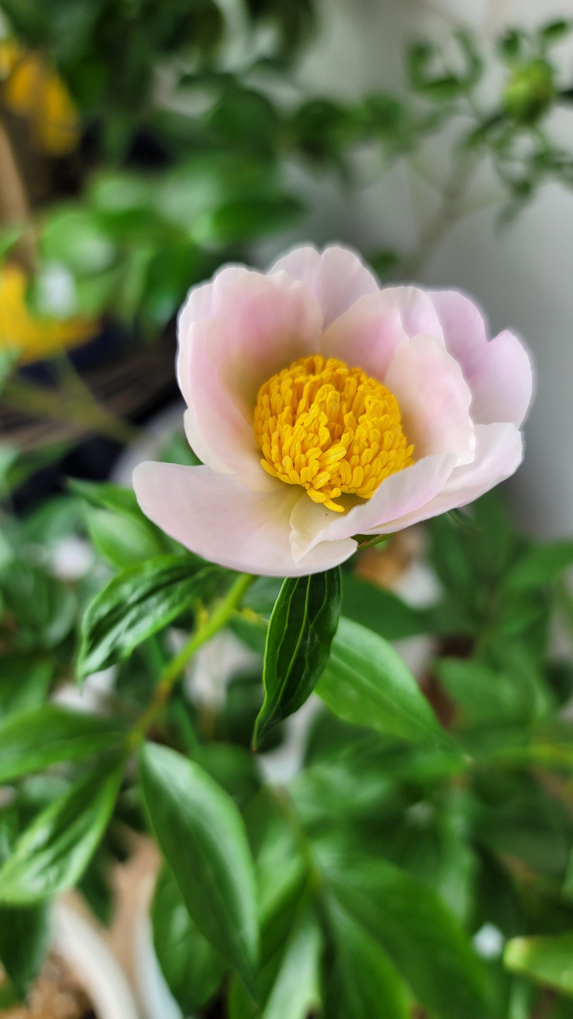 이렇게 예쁜 백색에 가까운 연한 작약 꽃이 피어 있었어요