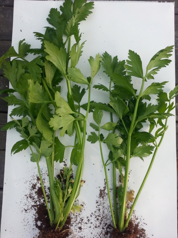 좌측이 미라클팜으로 우측이 일반 상토로 키운 샐러리인데, 이때는 미라클팜이 좋다는 걸 알려주려고 다양한 작물을 비교테스트 했었던 기억이 납니다.